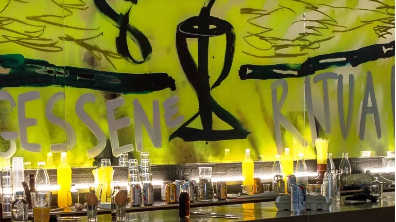 In Euphoric Recall verwandelt Vanessa Disler den Ausstellungsraum in eine Bar, inspiriert von einer Szene aus dem Film Light Sleeper. Sie verbindet die Installation mit dem psychologischen Konzept des "euphorischen Rückrufs" - einer Tendenz, sich an vergangene Ereignisse positiver zu erinnern als sie in der Realität waren - und lässt sich von zwei historischen Kunstwerken anregen, die Barszenen darstellen: Manets Un bar aux Folies Bergère und Jeff Walls Picture for Women.