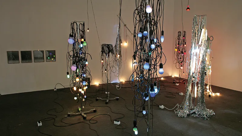 For Art Statements Haegue Yang created a group of sculptures based on lighting collected from a number of different countries. Suspended on simple I.V. poles, the objects are both pragmatic and eloquently allusive. Every figure has a character of its own, which is playfully underscored by the artist's choice of title. As a Korean living in German, Haegue Yang is interested in the cultural distinctions that she observes in everyday life; she collects items that testify to the existence of the global nomad. For the series of photographs, Gymnastics of the Foldables, also on view in Basel, Haegue Yang explored the cultural and graphic potential of a clothes rack, turning this familiar household object into a dancing figure. Objects of everyday use are not only indicative of different origins; the artist also translates them into a new reality -- the reality of her subjective gaze.