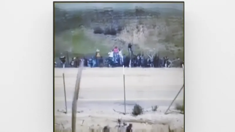 The video and sound installation This whole time there were no landmines from Lawrence Abu Hamdan is a compelling presentation of a concrete situation: the transgression of the border between Syria and Israel by a group of Palestinians in the region of the Golan Heights on 15 May 2011. The acoustic phenomenon of wandering, amplified voices is indebted to the topography of the valley and lends the work its title. The work itself invokes a larger geopolitical context. The montage of cell phone footage and audio recordings, of the kind regularly used by the media in conjunction with eyewitness reports, generates an apprehensiveness and uncertainty that deeply affects the viewer. The way in which this work combines topographical situation, politically defined borders and concrete infringement of the borders generates a fascinating, interrelated whole. Sound, as the overall, cohesive element, contributes substantially to the urgency of this artist‘s work.