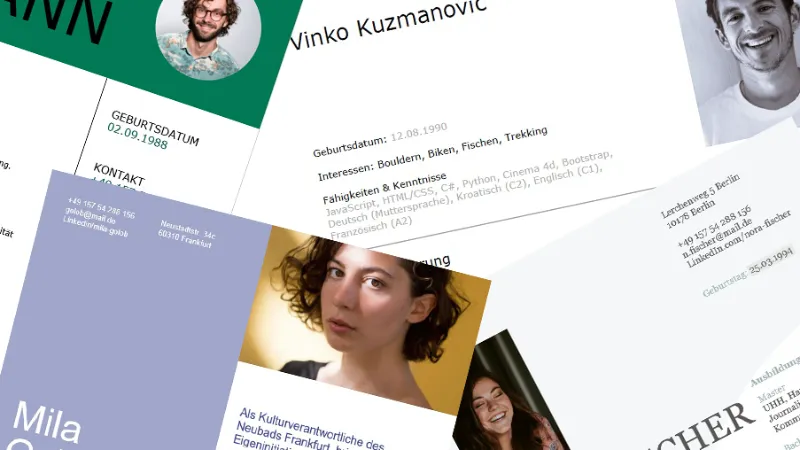 Mit unseren Vorlagen machen wir euch das Bewerben leichter. Wählt eine Version aus und los geht's mit eurem Lebenslauf für eure nächste Bewerbung. Ihr könnt zwischen eher klassischen Vorlagen und moderneren auswählen.