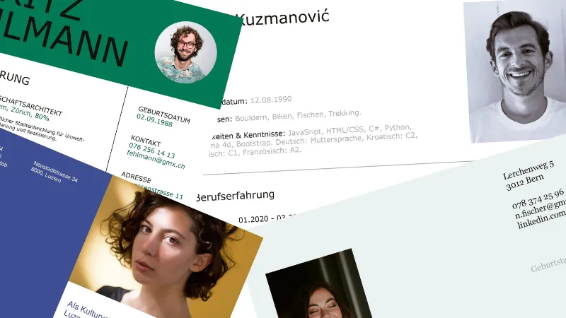 Mit unseren Vorlagen machen wir euch das Bewerben leichter. Wählt eine Version aus und gestaltet rasch euren eigenen CV für eure nächste Bewerbung. Ihr könnt zwischen zwei eher klassischen Vorlagen und zwei Moderneren auswählen.
