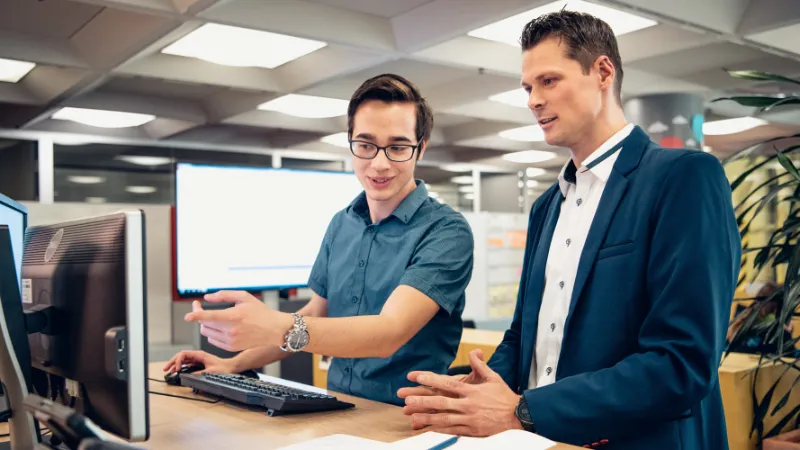 …fai la conoscenza del nostro team di apprendisti: Lavori insieme al resto del gruppo e approfondisci la tua conoscenza del settore assicurativo. Ad esempio, fornisci informazioni su polizze assicurative disponibili, cambiamenti di indirizzo e conferme di assicurazione.