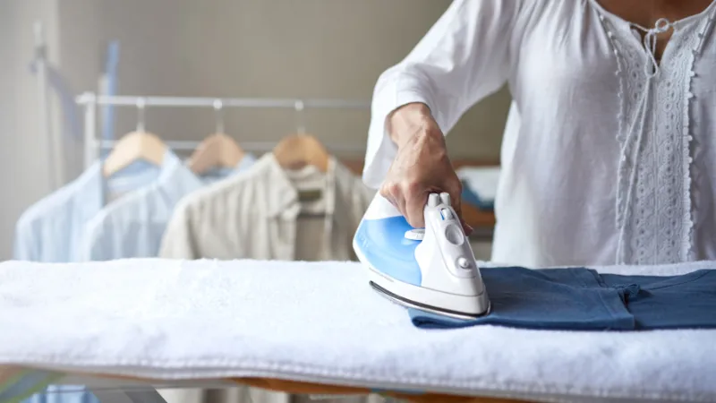 - Ein Bügeleisen beschädigt ein Regal, in dem es nach der Benutzung abgestellt wurde.