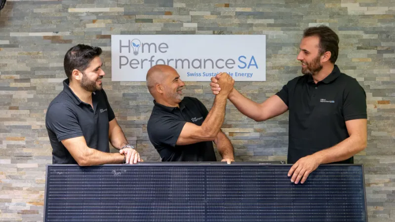 Avec mes deux partenaires, nous avons eu l’idée de créer HomePerformance. En effet, je travaillais déjà dans le domaine du solaire et étais actif dans d’autres entreprises en Suisse romande. Nous nous étions alors aperçus que les clients rencontraient un problème majeur: faire un choix parmi les nombreuses options d’installations disponibles sur le marché. Les clients n’arrivaient pas à savoir quels seraient les résultats précis d’un investissement photovoltaïque pour leur maison. Nous voulions donc permettre aux clients de comprendre facilement le fonctionnement de l’installation et leur apporter une solution clé en main. Chez HomePerformance, nous avons donc choisi de proposer une seule installation, soit des panneaux photovoltaïques Swissmade à très haut rendement de la marque Megasol, des micro-onduleurs de qualité Enphase et une batterie de stockage. Nos clients ont ainsi une grande capacité de production sur leur toit et une amélioration du temps d’autoconsommation sur 24 heures grâce à la batterie de stockage. Les solutions que nous proposons sont simples et les clients comprennent facilement quels sont les avantages.