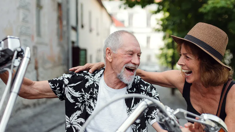 Quelques années plus tard, nous rencontrons de nouveau Stephan et Monika. Ils sont tous les deux à la retraite et profitent pleinement de tours en moto à deux. «Nous avons établi un budget pour le temps après la retraite», explique Stephan. Il a retiré une partie de sa prévoyance sous forme de capital qu’il a réinvesti avec une stratégie de placement basée sur des objectifs.