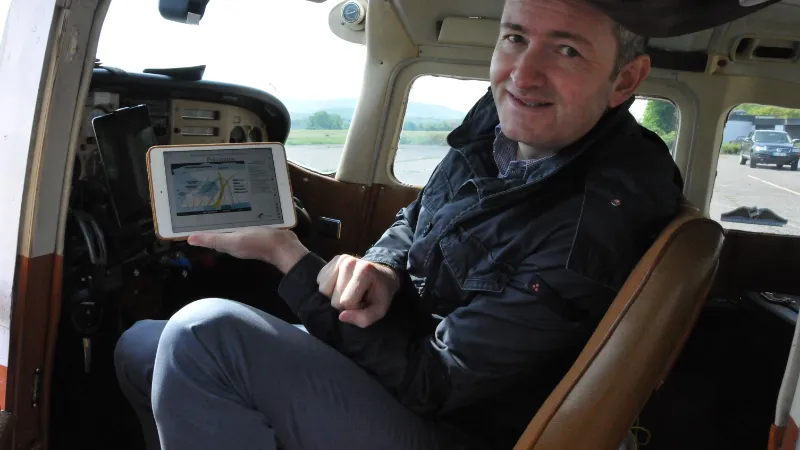 Nous travaillons en étroite collaboration avec un service météorologique qui nous fournit plusieurs météorologues de fin avril à mi-octobre. Ils observent en permanence la météo et déterminent l'état de préparation opérationnelle du pilote et de l'avion antigrêle. Chaque matin à 8 heures, nous recevons un bulletin météorologique détaillé pour la zone protégée, dans lequel le météorologue explique ce qui se passera dans le temps et surtout s'il y a un danger de grêle et quand un pilote doit être prêt. Ensuite, le pilote prépare l'avion et contacte à nouveau le météorologue pour savoir s'il y a eu des changements par rapport à l'évaluation initiale. Le météorologue donne ensuite l'ordre de lancement au pilote et lui indique dans quelle direction voler. Le pilote et le météorologue sont en contact permanent jusqu'au reste de la journée. Du haut des airs, le pilote peut voir très clairement les nuages à vacciner. De plus, il dispose d'une tablette à bord avec laquelle il peut suivre de très près la météo sur toute la zone protégée grâce à une connexion satellite. Il vole vers le nuage, "traverse" sous le nuage - cherchant ainsi la zone de courant ascendant - puis tourne en rond sous le nuage et commence le processus de vaccination.